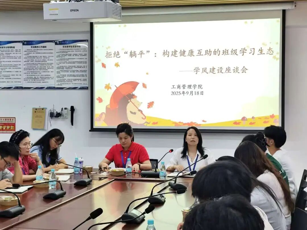 ( 梁培欣,陈碧怡)为进一步加强班级学风建设,激发学生学习动力,构建健康互助的班级学习生态,9月18日,suncitygroup太阳集团以“拒绝‘躺平’:构建健康互助的班级学习生态”为主题,召开学风建设座谈会。学院党组织书记杨惠、各辅导员、教务员及全体班级班长齐聚一堂,共商学风建设良策。