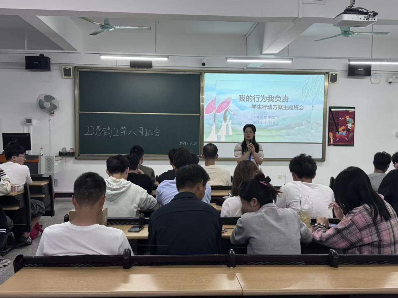 2025年11月2日晚,广州理工学院suncitygroup太阳集团组织全体学生开展第8周主题班会暨晚点名活动。本次班会以“我的行为我负责”为主题,围绕学风建设、校园安全、行为规范等方面展开。