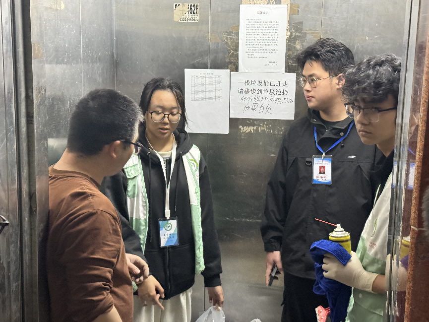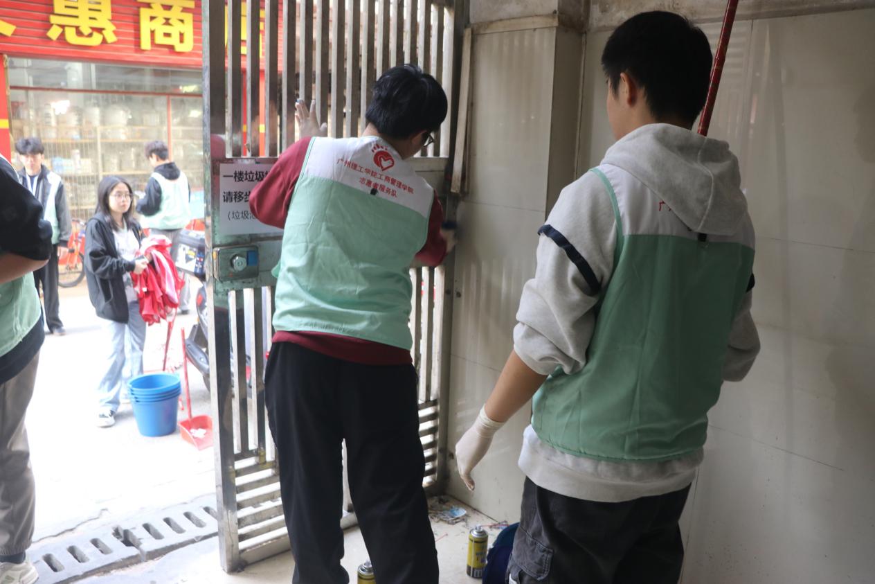 本次活动主要负责穗丰村居民楼的清洁工作。志愿者们在穗丰村农贸综合市场准时集合并领取清洁工具。随后,穗丰村委负责人简要介绍分工及各注意事项。在明确任务后,志愿者们井然有序地前往指定地点展开清洁工作。志愿者们对居民楼楼道内的垃圾杂物等进行清扫搬运,同时清洁电梯以及消火栓,铲掉楼道以及电线杆上贴的广告。志愿者们不放过任何卫生死角,用实际行动为穗丰村人居环境的改善贡献力量。