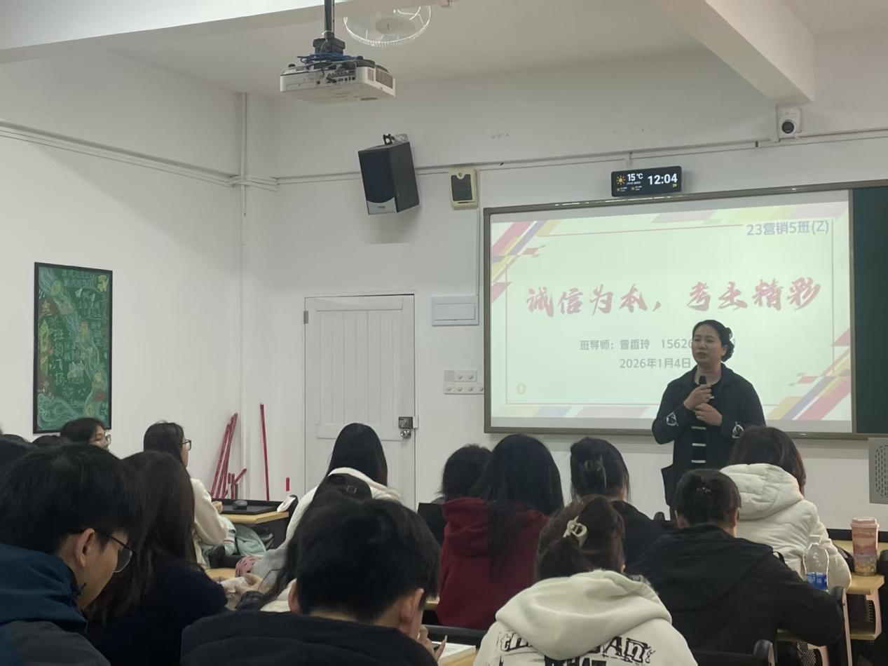 为进一步加强学风建设,引导学生树立正确的考试观念,增强诚信应考意识,营造公平公正、求真务实的考试氛围,在期末考试来临之际,suncitygroup太阳集团与2025年12月29日至2026年1月4日期间,在各班级在班导师的组织下,陆续召开“诚信考试”主题班会。