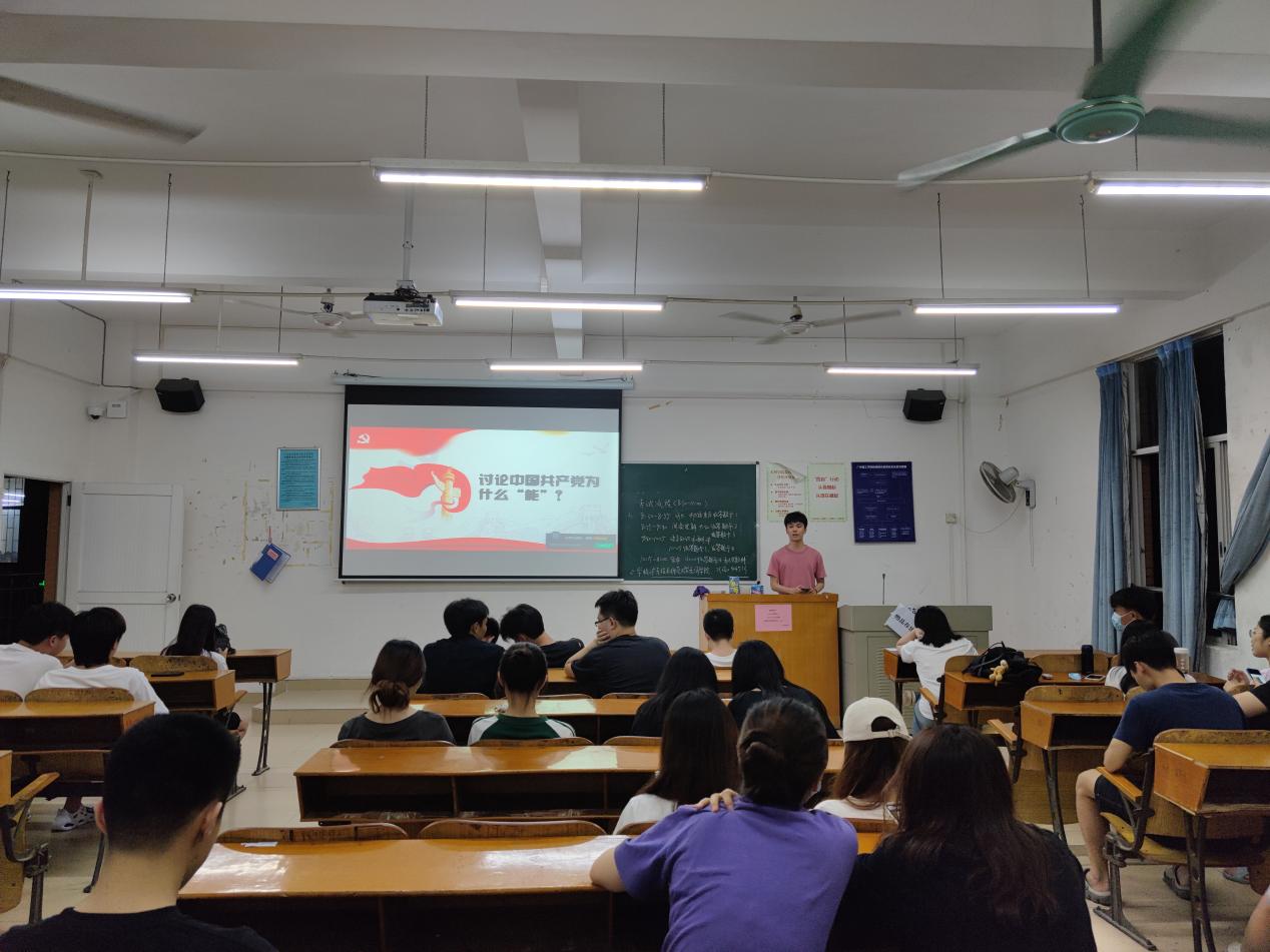 班会伊始,主讲人设问引导,带领同学们一起回顾中国共产党成立100周年来取得的伟大成就,共同谈论中国共产党为什么“能”。通过交流讨论“为什么在如此严重的疫情下,我们的国家能迅速遏制住疫情的蔓延,我们大学生能顺利返校”、“为什么家庭有困难的学生,能够顺利读完大学,完成学业”等问题,让同学们深化对党的认知,明白党史学习的重要性,认真学习党的伟大历史。大家只有不断地学习,才能运用中国共产党多年来积累的伟大智慧来化解前进道路上的各种风险与挑战,才能不断交出无愧于党、无愧于时代、无愧于人民的合格答卷。