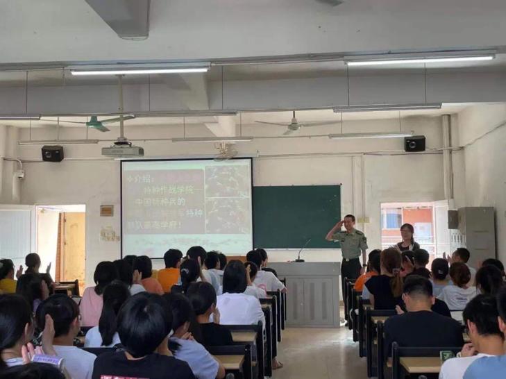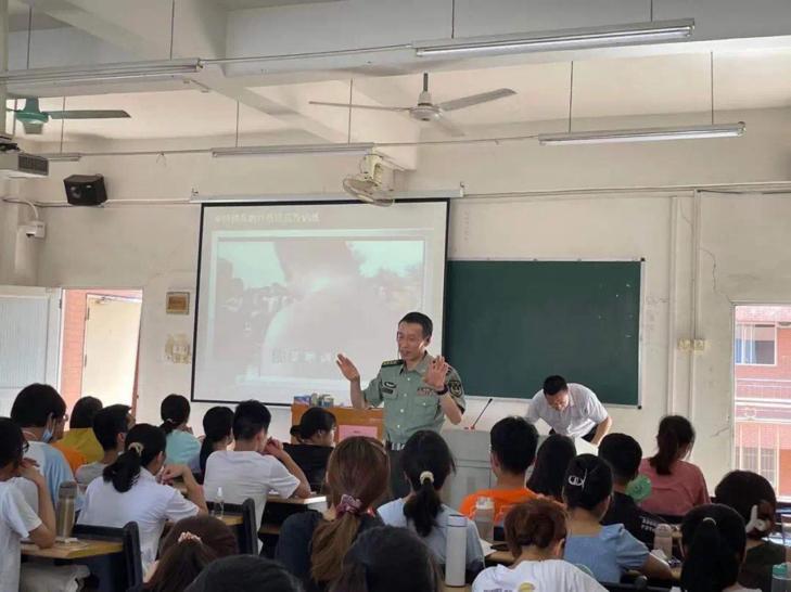 首先,陈南生教授就大学生目前主要的心里状况,阐述了当代大学生如何进行正确的心理调适,如何树立正确的世界观、人生观和价值观,积极面对大学生活,迎接人生挑战。其次,他还给同学们介绍了我国的历史国情以及现在的国防建设情况,详细说明了什么是特种兵及特种兵的责任与贡献。陈南生教授结合了马斯洛需求层次的心理学给同学们分析了安全感的来源,而他特别强调的一种安全感是“祖国给予的安全感”。他说:“在当今安稳的社会生活安全感是我们祖国给予自己、是家人给予自己、是自己给予自己,作为新时代的大学生我们的心要强、要稳、要学会思考,能经受磨练,正如宝剑锋从磨砺出,梅花香自苦寒来。”