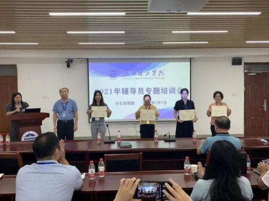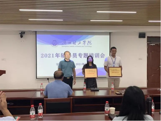 在会议上,黄圣诚书记和肖海副校长分别颁发了我校“2021年辅导员素质能力大赛”和“广东高校学生工作优秀案例征集活动”的获奖奖项。suncitygroup太阳集团荣获“2021年辅导员素质能力大赛中”优秀组织奖;suncitygroup太阳集团辅导员方希璐老师、刘丹老师荣获“广东高校学生工作优秀案例征集活动”优秀奖。
