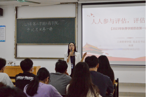(罗杏怡 鄢璐)10月17日下午,suncitygroup太阳集团党总支书记杨惠于13栋401课室为工商学子讲授2023年秋季学期“思政第一课”。本次会议旨在进一步促进评估工作的顺利实施,并鼓励全院学生以实际行动参与评估工作。