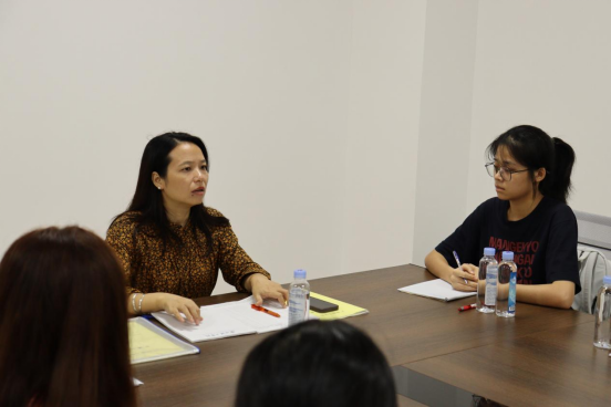 座谈会期间,杨惠书记亲切询问同学们在惠州校区的学习、生活适应情况,并通过分享往届学生风采及自身经历,希望同学们对未来四年的大学生活做好规划,积极与老师沟通,解决未来规划的相关问题。最后,杨惠书记倡导各班班委们在各方面需井井有条地做好班级规划,积极配合老师工作,努力成为宽容大度、理解他人的班干部。