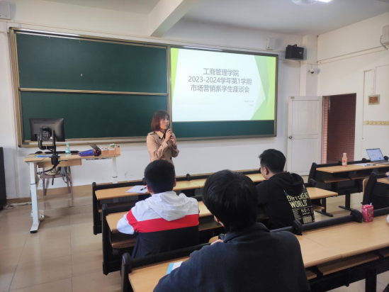 (张静)2023年11月24日下午,我院市场营销系于7栋综合楼501教室召开2023-2024学年第一学期市场营销系学生期中座谈会,为进一步提升学院服务管理水平,提升人才培养质量,会议由市场营销系赖玉莲老师主持,教学秘书张静老师和市场营销系各年级学习委员参会出席。