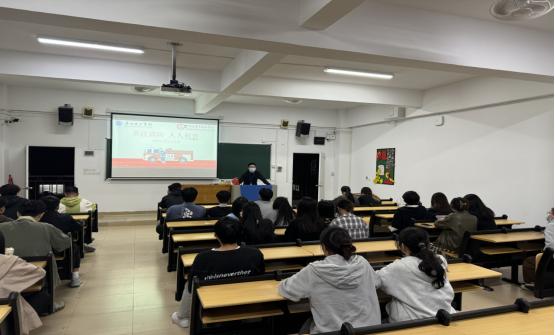 会议中,首先由高校的实际火灾案例引入,其次是对各类消防知识的详细学习,然后是让同学们认识各类消防设施。在班会过程中,各班主讲人也通过生动清晰的例子来告诉同学们不同消防设施的用法以及是如何预防火灾。最后,各班主讲人也告诉同学们如何从火场逃生以及如何对火灾进行扑救。