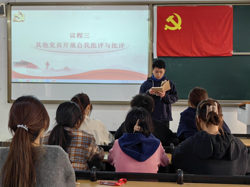 (练家维,何玟静)2月27日,我院学生党支部以线上线下相结合的方式,分别于一号教学楼1-802、1-803、1-804、1-809教室同步召开了2024年度组织生活会暨民主评议会。此次会议旨在深入学习贯彻党的方针政策,加强党员队伍建设,提升党员素质,推动党支部工作高质量发展。