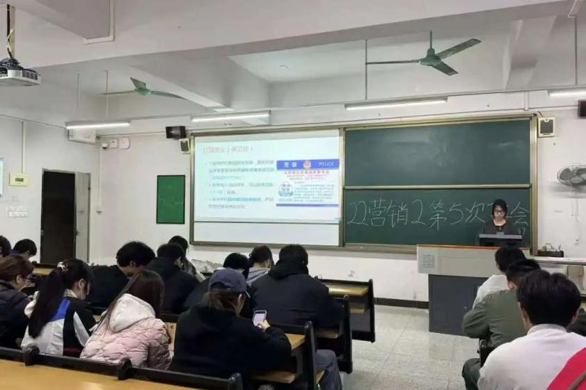 此外,主讲人提醒大家切勿随意下载陌生软件及点击不明链接,警惕所谓“稳赚不赔”的理财陷阱,守护好个人财产安全;告知同学们保卫处的具体位置及联系电话,以便在必要时刻能迅速联系辅导员或前往综合楼 102 保卫处寻求帮助;强调宿舍管理规定,严禁使用除饮水机等特定电器外的违规电器,消除宿舍环境的用电安全隐患。