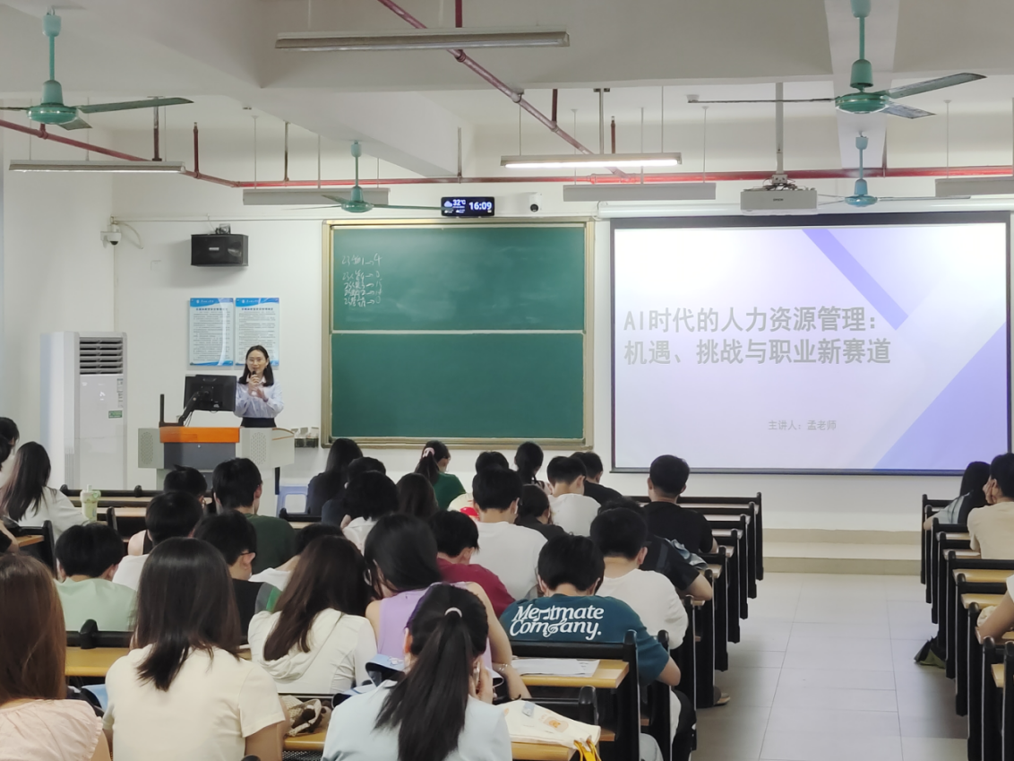 (蔡琼荣)5月14日星期三,正值我校素质教育周,一场聚焦“AI时代人力资源管理:机遇、挑战与职业新赛道”的专题活动在13栋403教室火热开展。此次活动吸引了众多对人力资源管理领域感兴趣的同学前来参与,为他们提供了深入了解行业前沿趋势的宝贵机会。