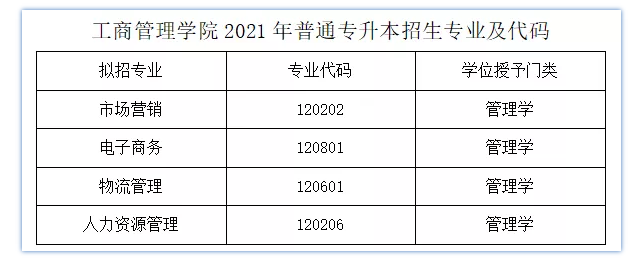 为充分利用优质的教育资源,满足更多高职高专院校学生深造的需求,我校2021年将继续面向全省开展普通专升本招生。2021年我院普通专升本仍是4个招生专业,分别人力资源管理、物流管理、电子商务、市场营销。