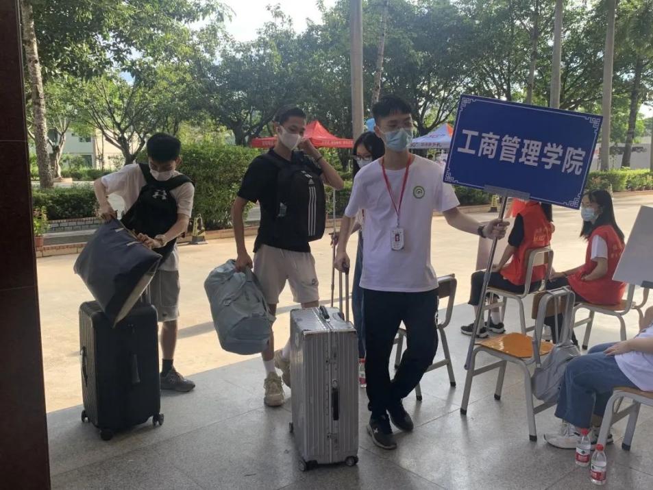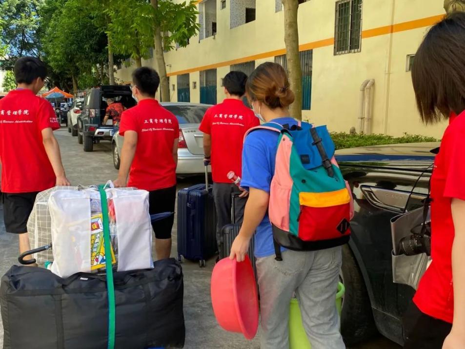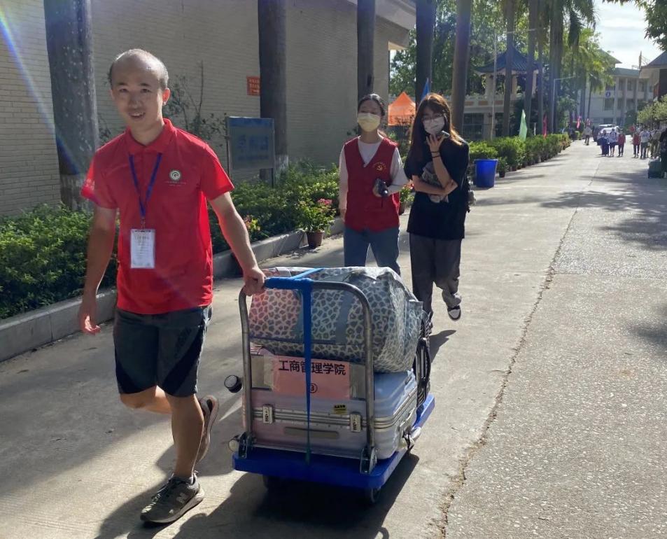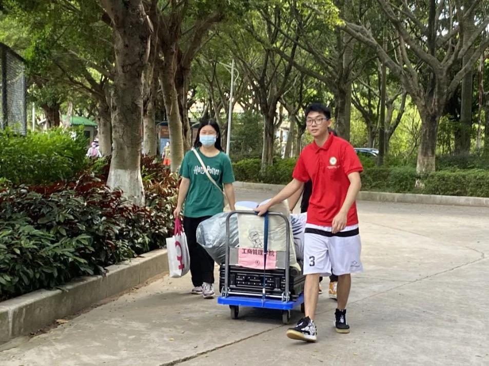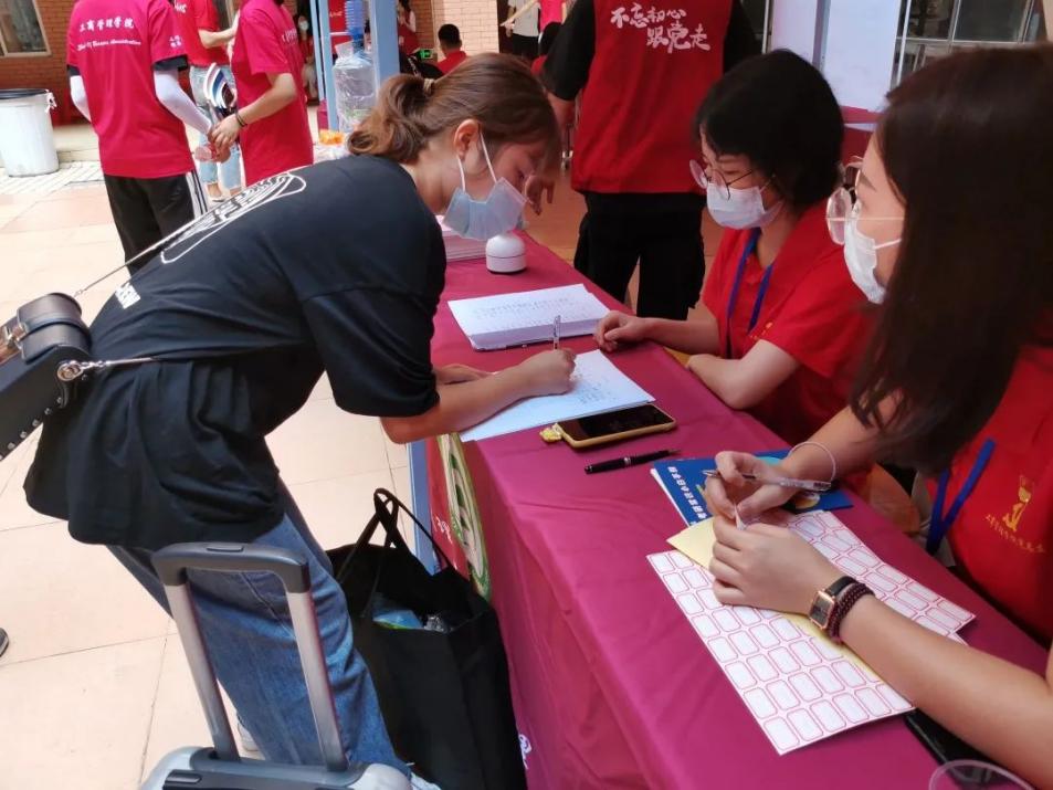 早上六点多,所有迎新人员已经全部到位,学院书记和辅导员来到迎新现场密切关注迎新工作并对新生表示热烈欢迎。我院迎新的志愿者们在学校门口等待新生的到来,他们帮助新生搬运行李、介绍校园的比赛活动和内部环境、解决新生对校园的疑问,让新生可以加深对学校的了解。志愿者们的热情周到的服务,温馨甜蜜的笑容更是让同学们真切感受到来自学校的温暖,来自志愿者的关怀与照顾。