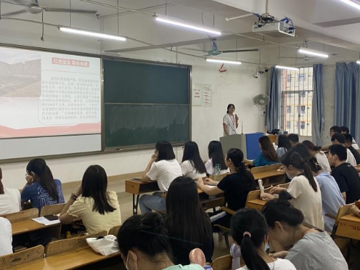 紧接着,主持人介绍我院党总支在校内取得的各项成就:红歌朗诵比赛获一等奖;党史知识竞赛获一等奖;基层党建工作创新案例优秀奖;先进基层党组织等。