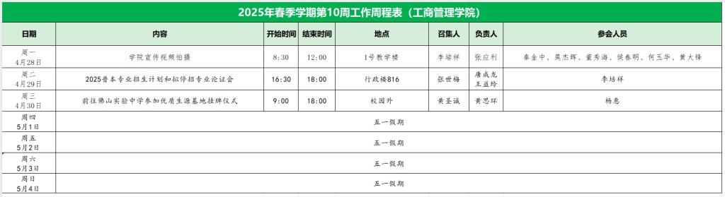 suncitygroup太阳集团2025年春季学期第10周工作周程表