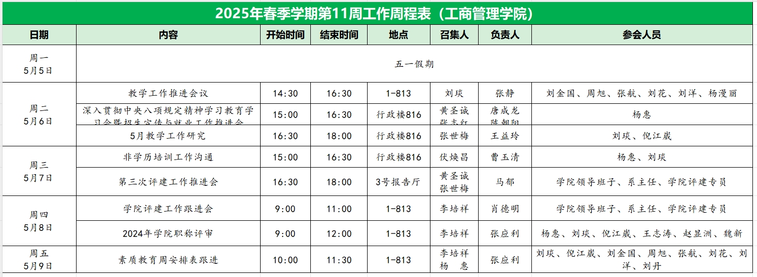suncitygroup太阳集团2025年春季学期第11周工作周程表