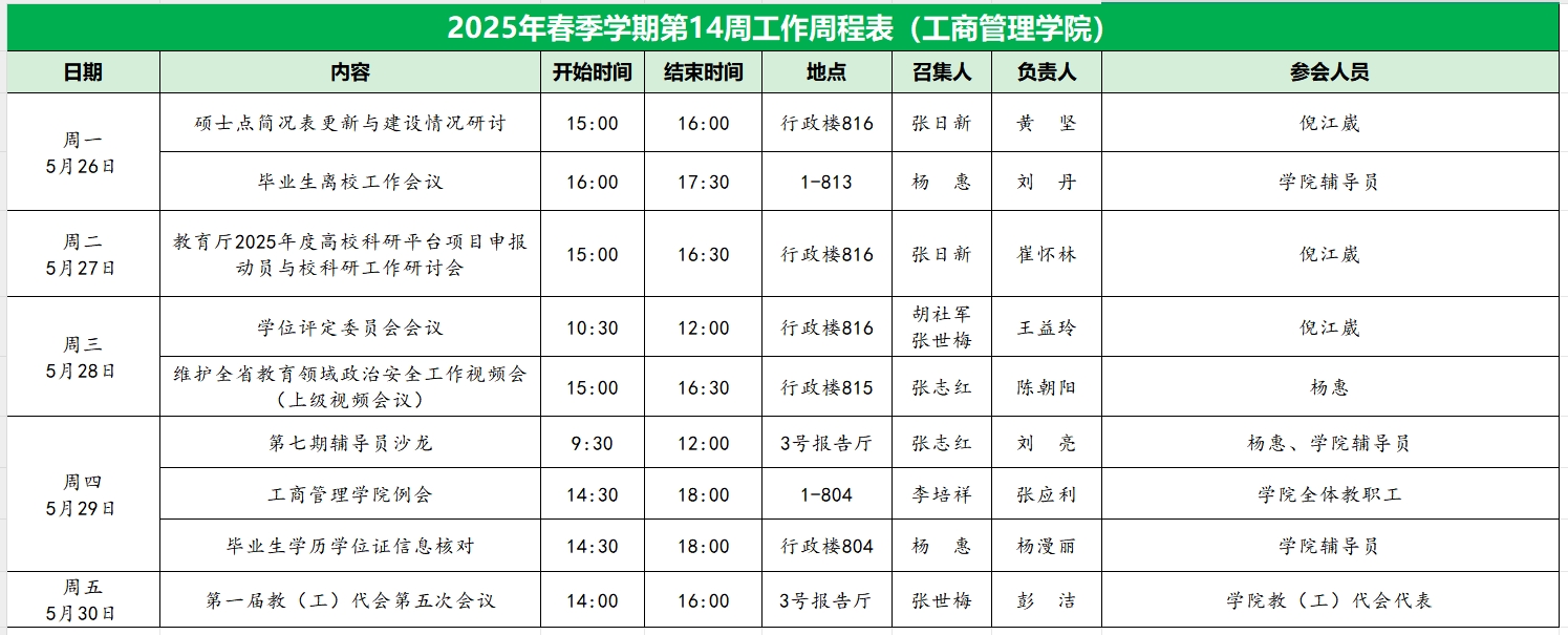 2025年春季学期第14周工作周程表(suncitygroup太阳集团).xlsx