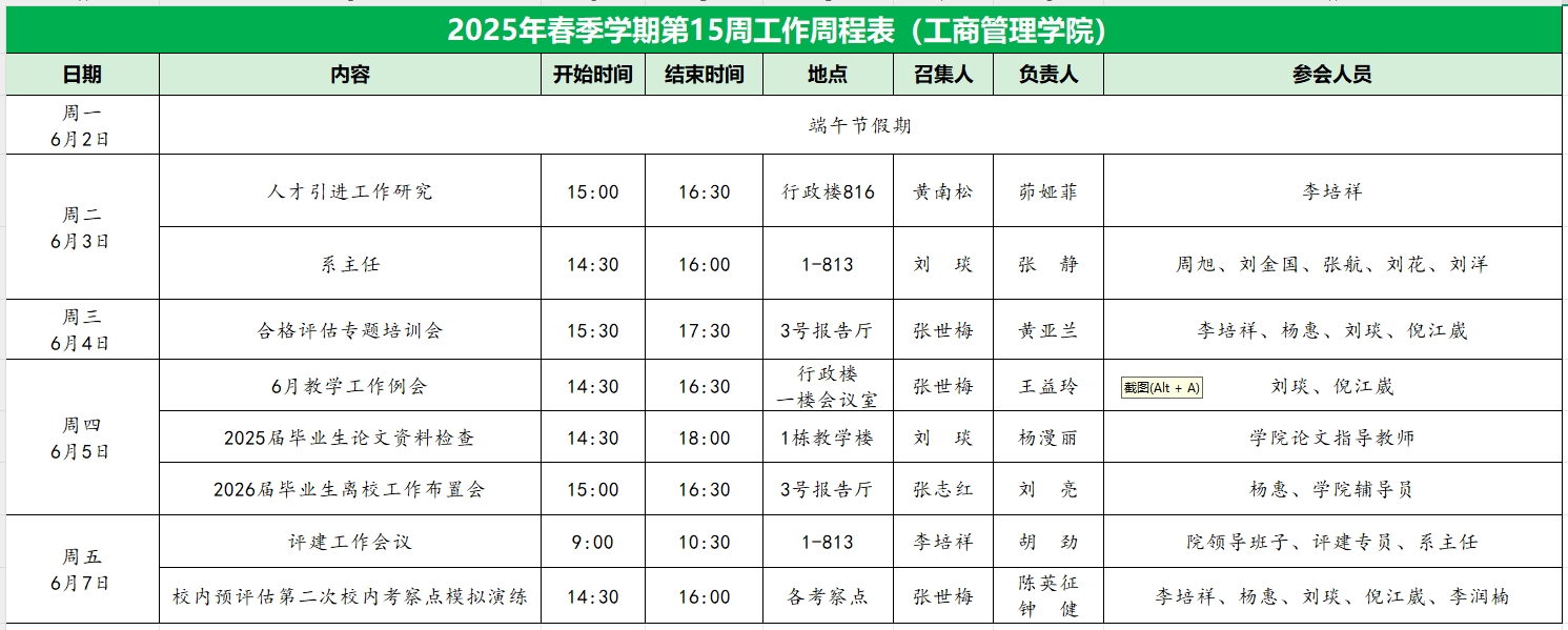 suncitygroup太阳集团2025年春季学期第15周工作周程表