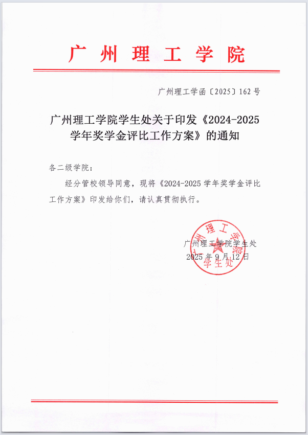 广州理工学院学生处关于印发《2024-2025学年奖学金评比工作方案》的通知