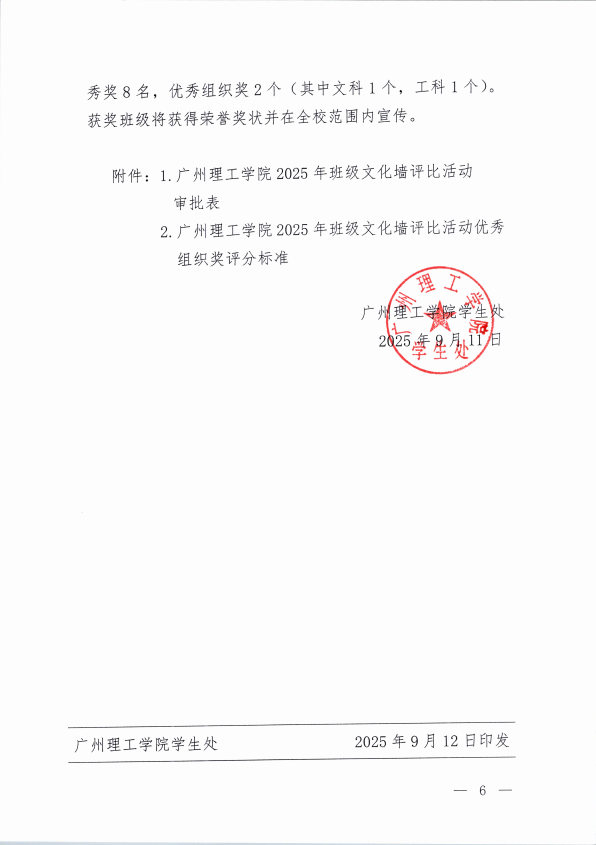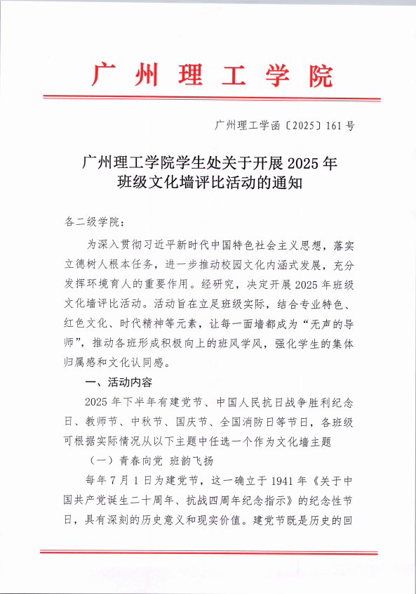 广州理工学院学生处关于开展2025年班级文化墙评比活动的通知