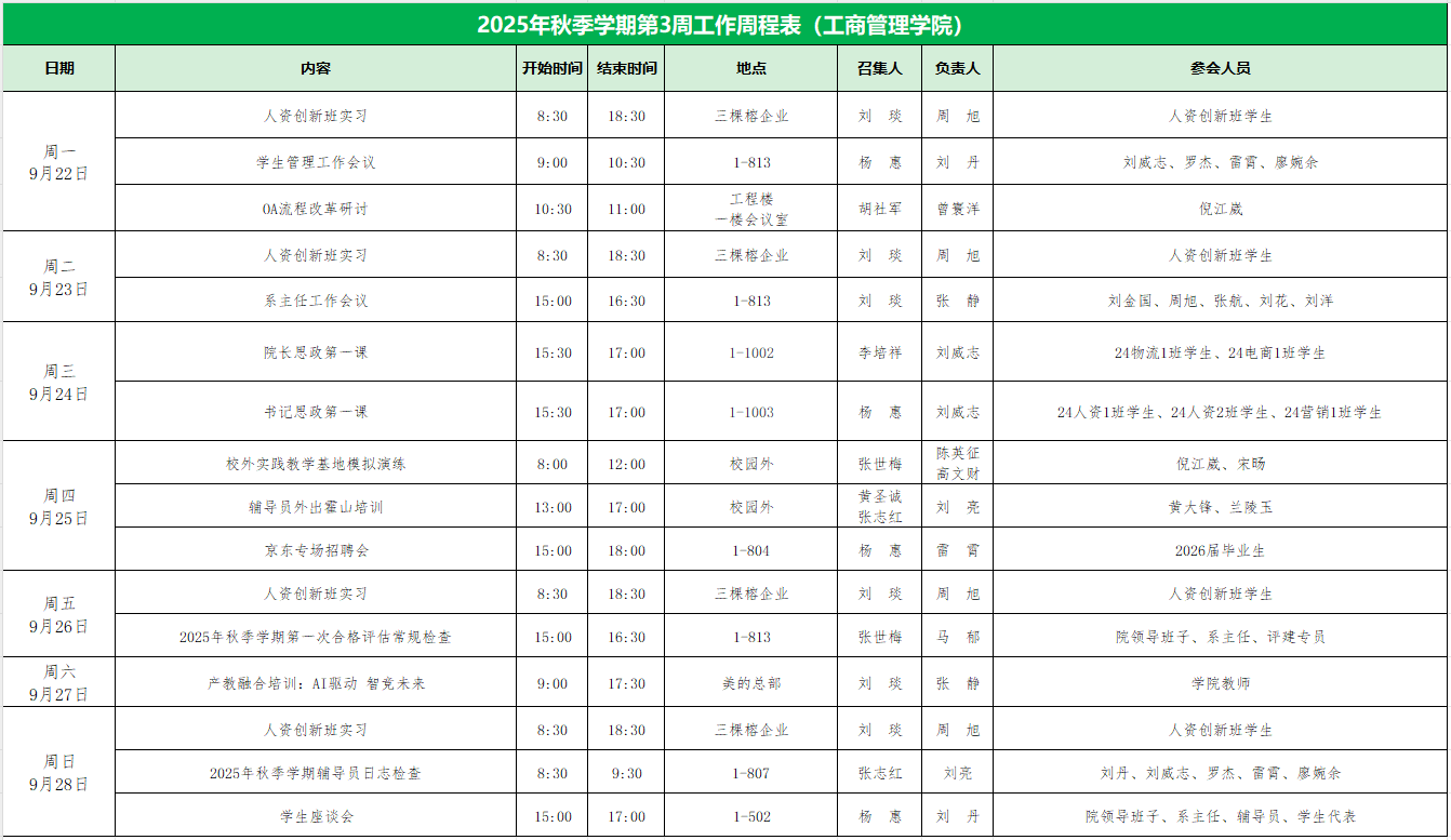 suncitygroup太阳集团2025年秋季学期第3周工作周程表