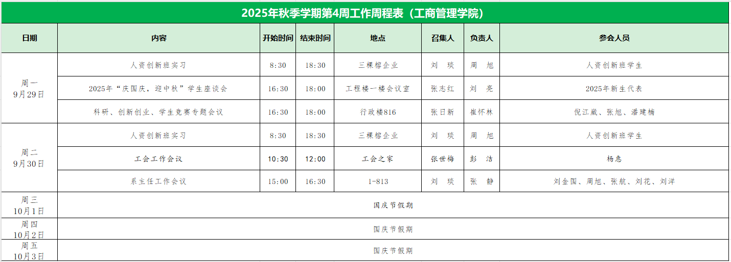 suncitygroup太阳集团2025年秋季学期第4周工作周程表