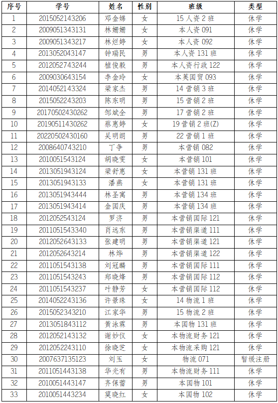 为进一步规范我校学生学籍管理,维护学校教育管理秩序的正常运行,保障学生的合法权益,根据《普通高等学校学生管理规定》(教育部令第41号)及《广州理工学院学籍管理办法》(广州理工〔2025〕55 号)规定等相关文件要求,经学院党政联席会议讨论研究,决定对超期休学、保留入学资格的学生开展学籍清理工作。现将有关事项通知如下: