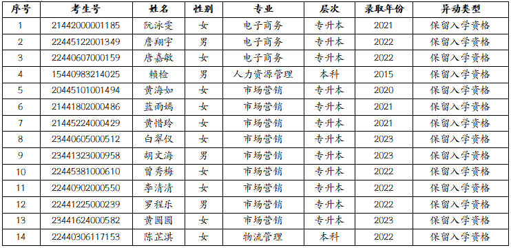 (2)保留入学资格超期学生: 保留入学资格期满,在学校规定期限内未提出入学申请或申请入学经审查不合格的新生。