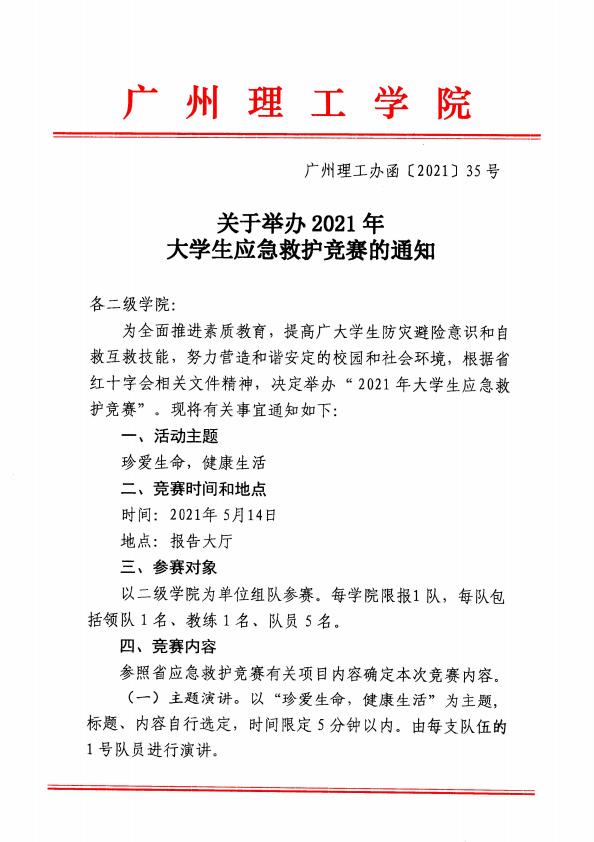 关于举办2021年大学生应急救护竞赛的通知
