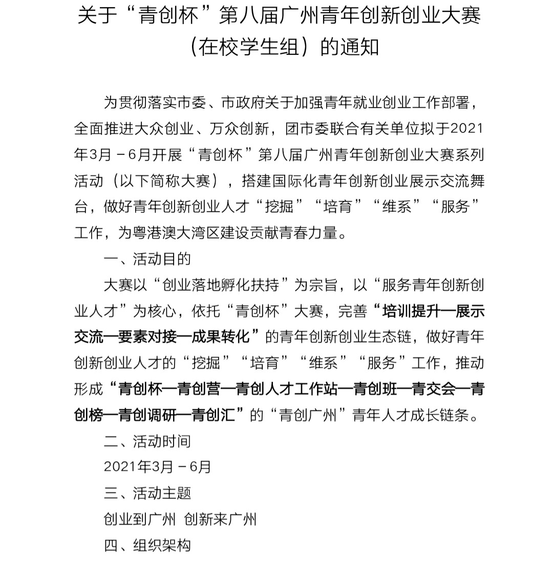 关于“青创杯”第八届广州青年创新创业大赛(在校学生组)的通知