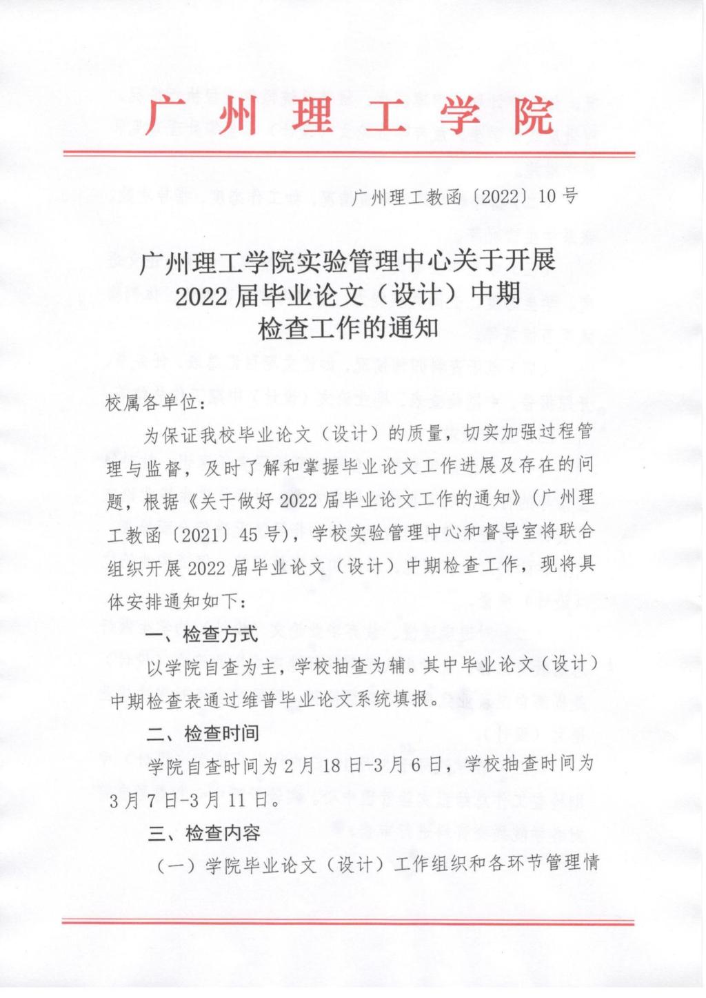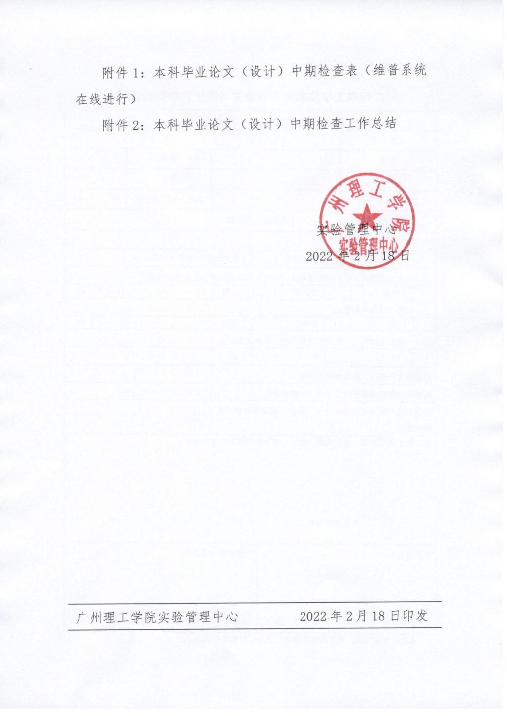 广州理工学院实验管理中心关于开展2022届毕业论文(设计)中期检查工作的通知