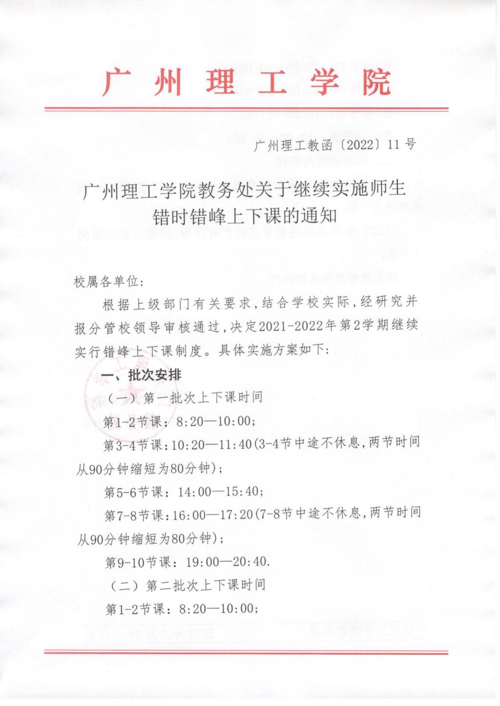 广州理工学院教务处关于继续实施师生错时错峰上下课的通知