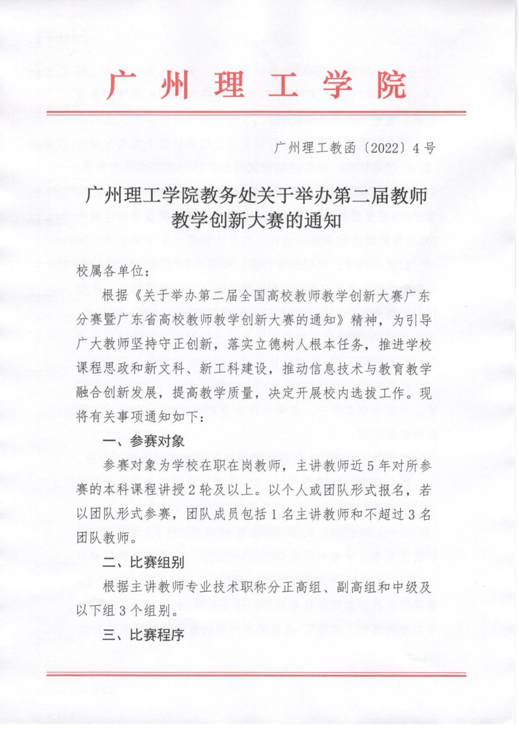 广州理工学院教务处关于举办第二届教师教学创新大赛的通知