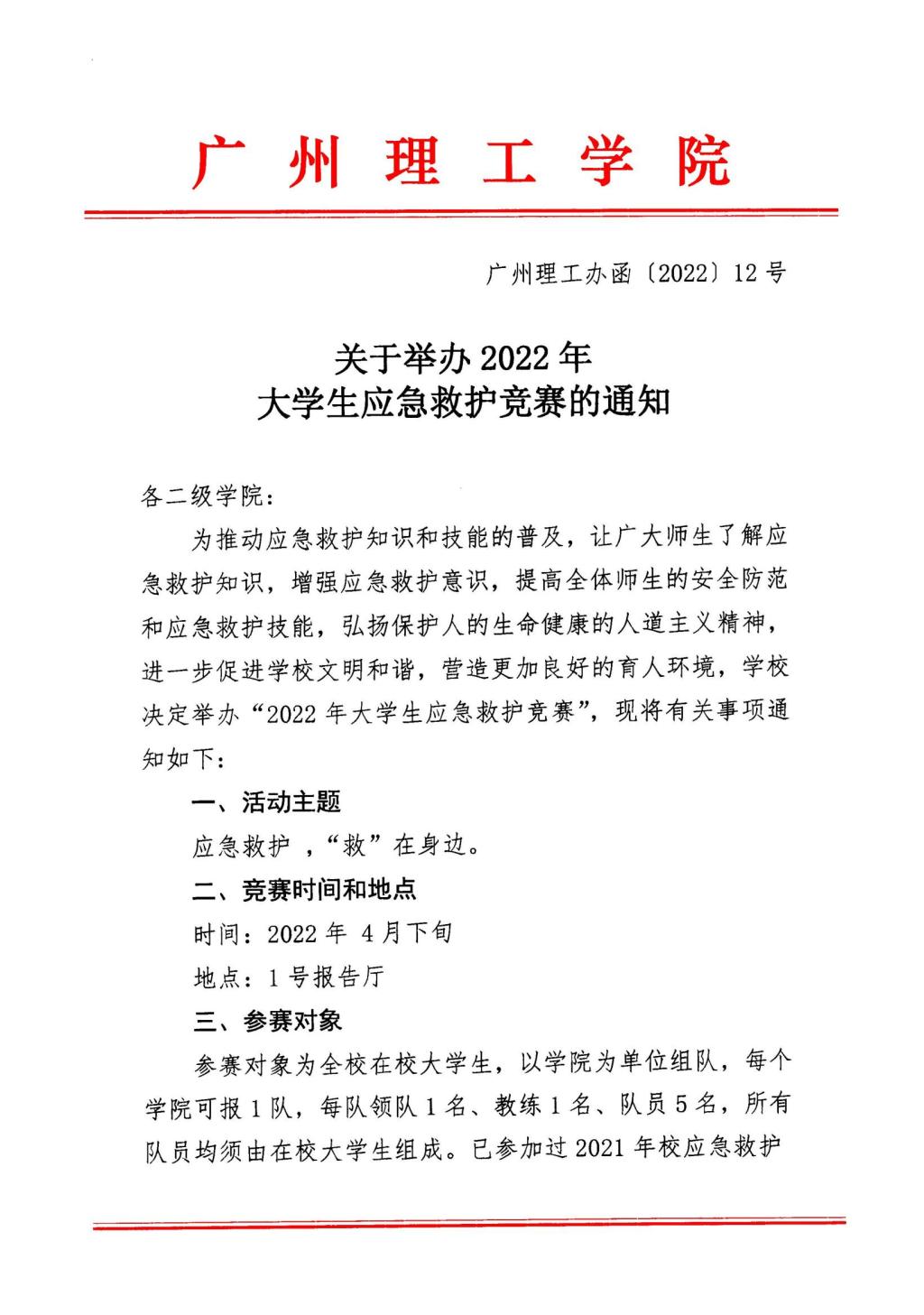 关于举办2022年大学生应急救护竞赛的通知