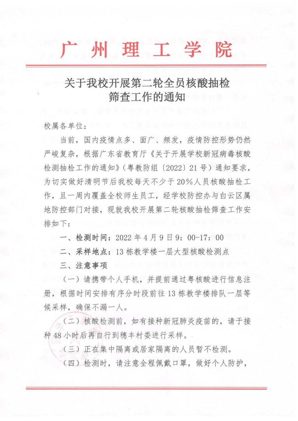 关于我校开展第二轮全员核算抽检筛查工作的通知