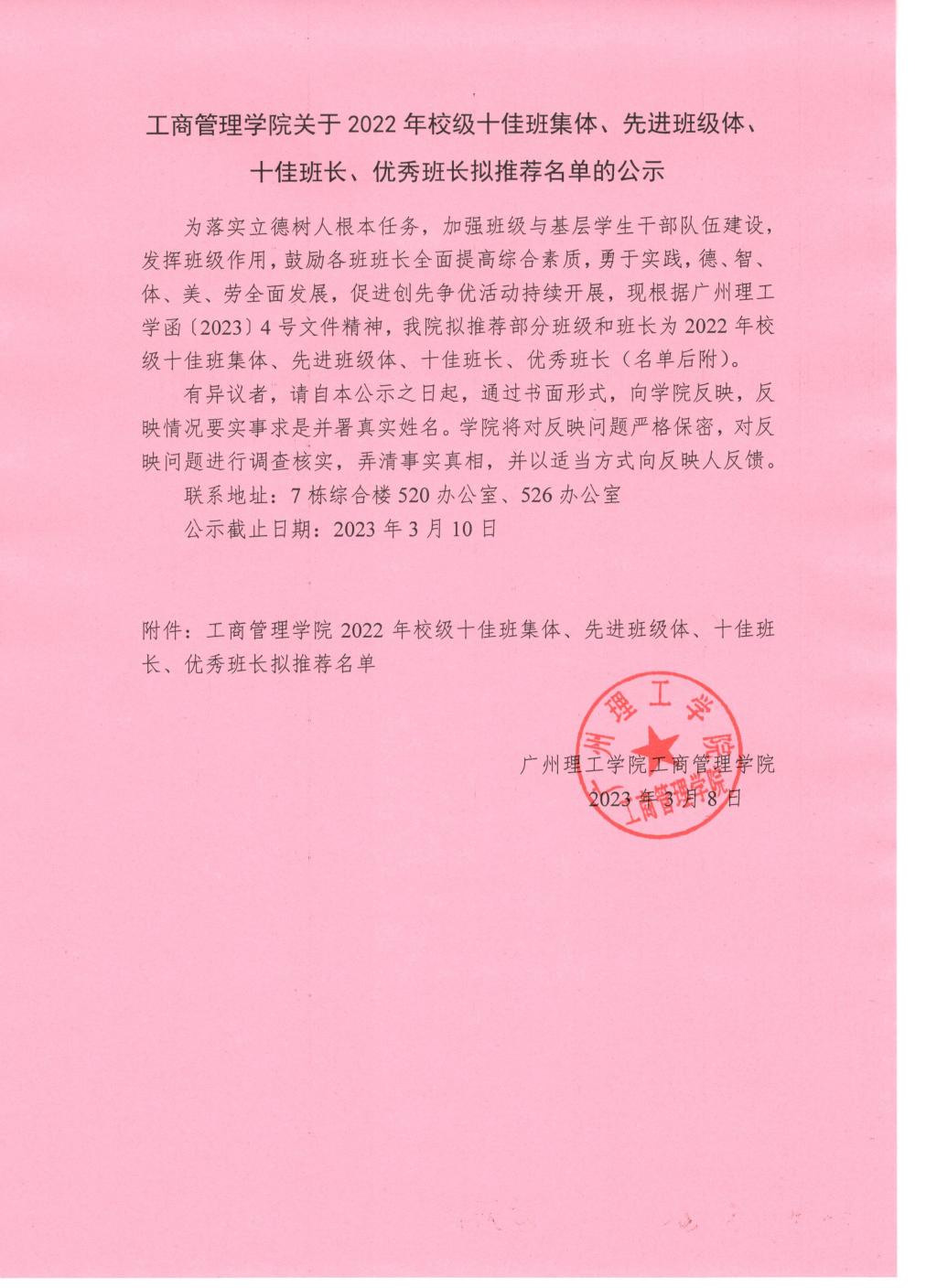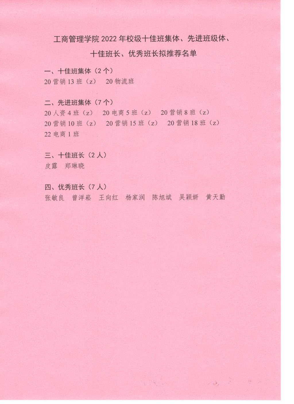 suncitygroup太阳集团关于2022年校级十佳班集体、先进班级体、十佳班长、优秀班长拟推荐名单的公示