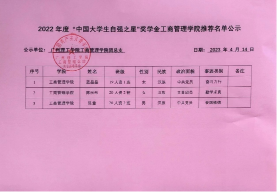 (何锦辉)为深入贯彻落实习近平总书记关于青年工作的重要思想,围绕学习宣传贯彻党的二十大精神,在广大青年群体中厚植爱党、爱国、爱社会主义的情感,引领他们牢记时代责任、坚定跟党走、建功新时代。现将suncitygroup太阳集团开展2022年度“中国大学生自强之星”奖学金推报活动,现将suncitygroup太阳集团2022年度“中国大学生自强之星”奖学金推荐名单进行公示,公示名单如下: