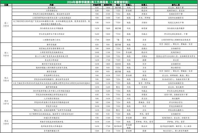 2024年春季学期第2周工作周程表(suncitygroup太阳集团)