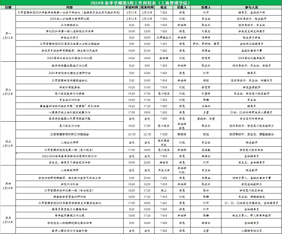 2024年春季学期第3周工作周程表(suncitygroup太阳集团)