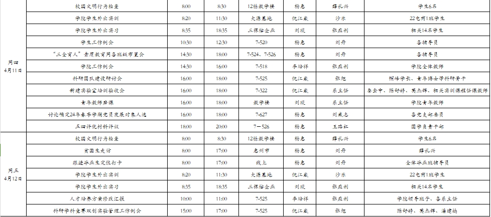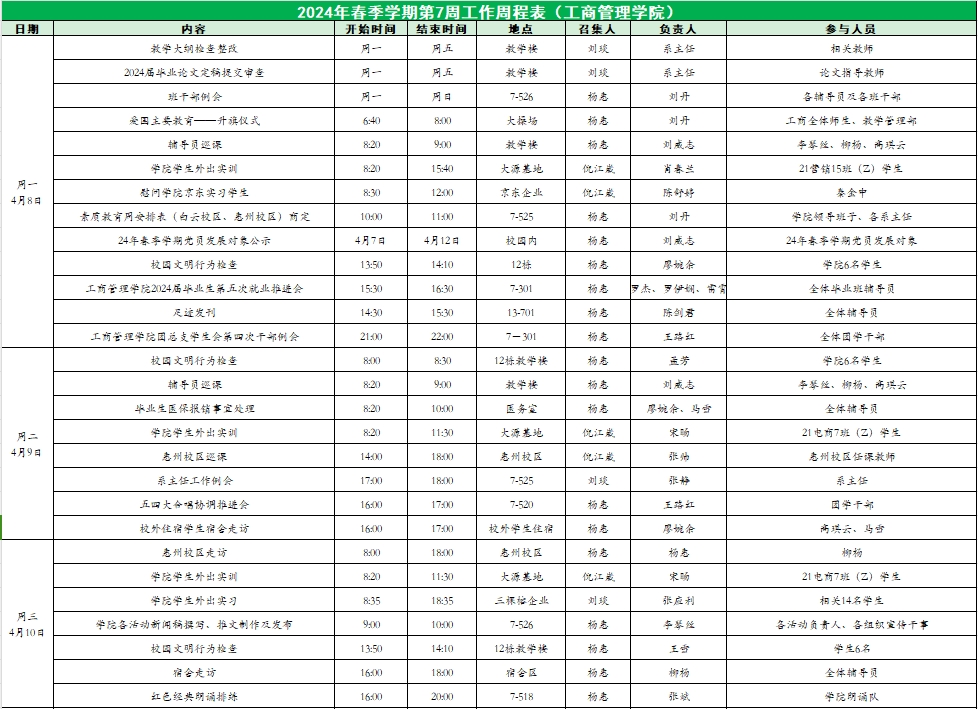 suncitygroup太阳集团2024年春季学期第7周工作周程表