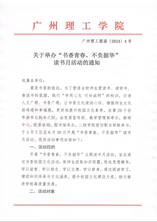 关于举办“书香青春,不负韶华”读书月活动的通知