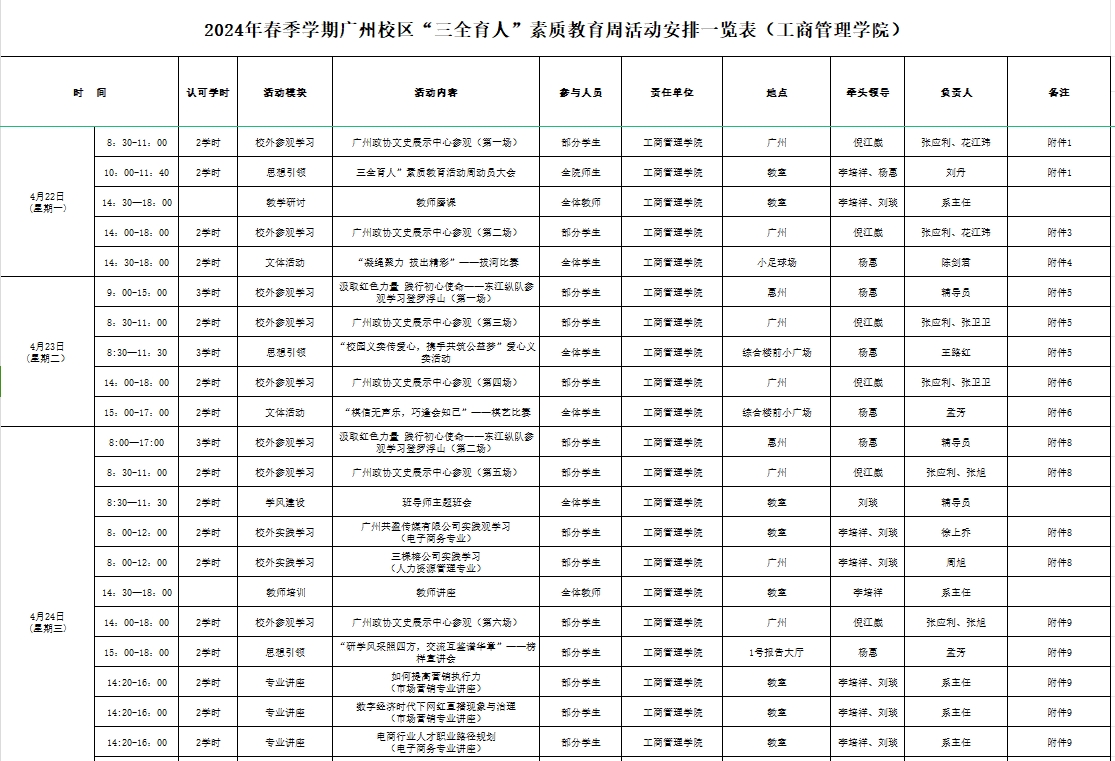 2024春季学期广州校区“三全育人”素质教育周活动安排一览表(suncitygroup太阳集团).xlsx.xlsx