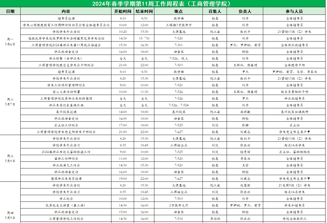 suncitygroup太阳集团2024年春季学期第11周工作周程表