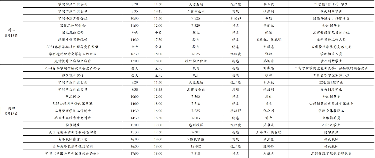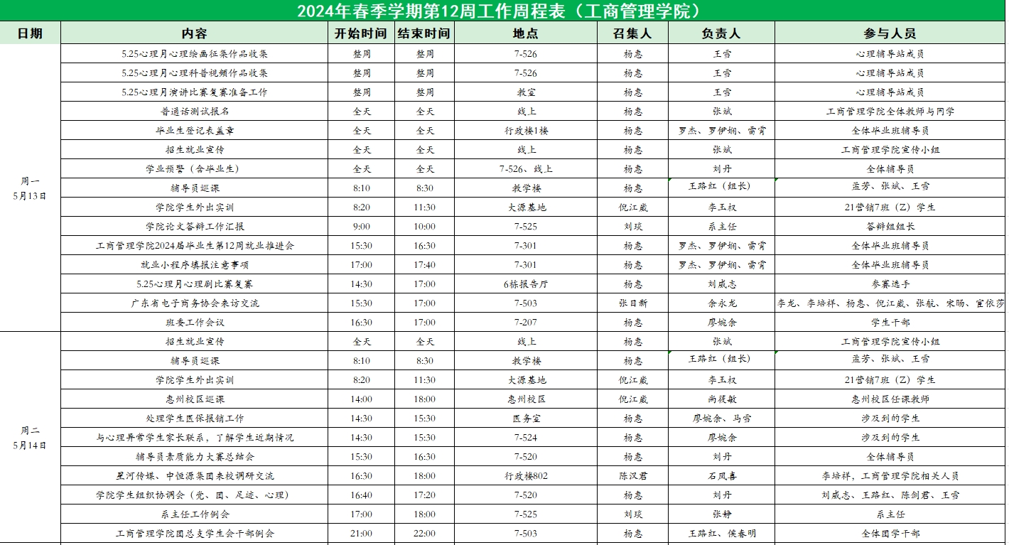 suncitygroup太阳集团2024年春季学期第12周工作周程表