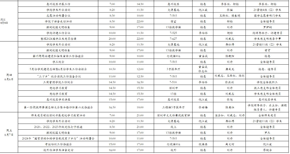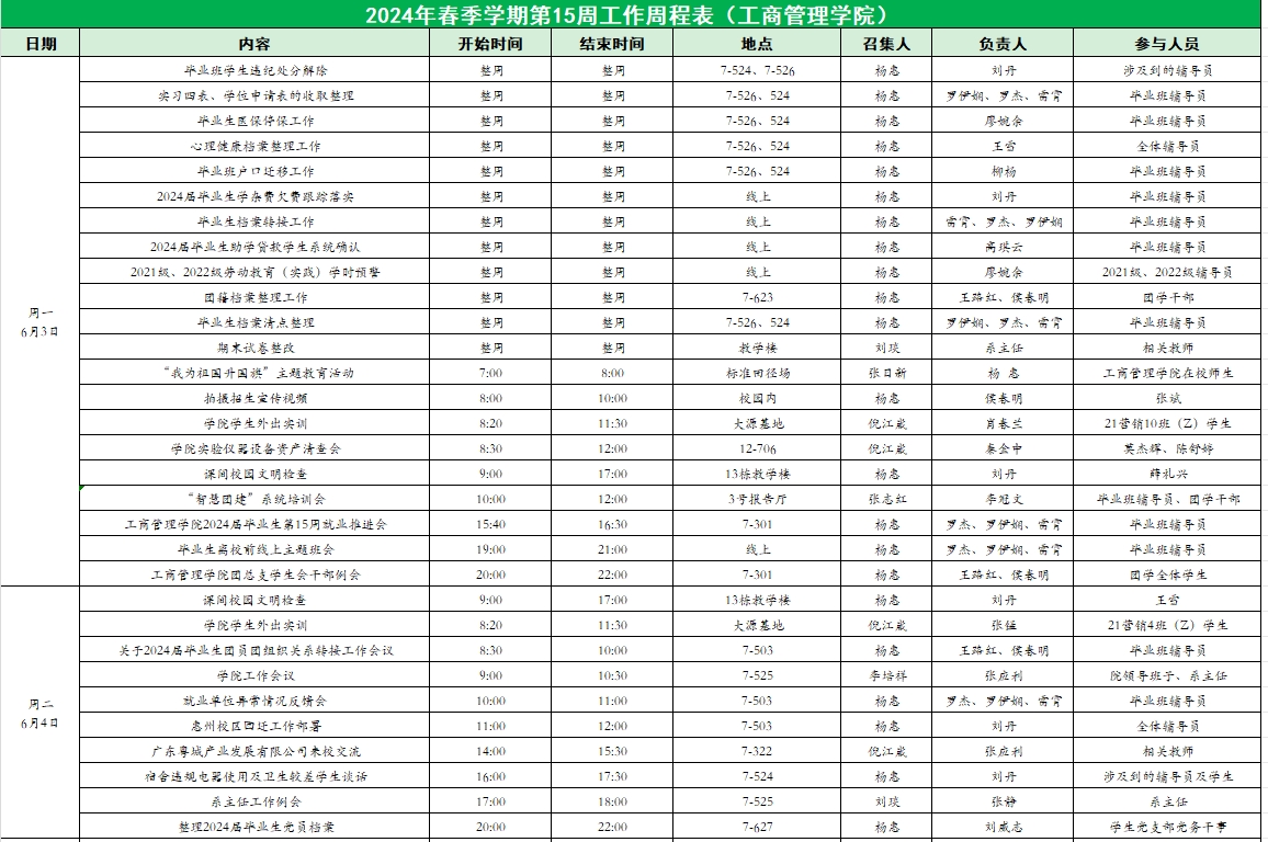suncitygroup太阳集团2024年春季学期第15周工作周程表