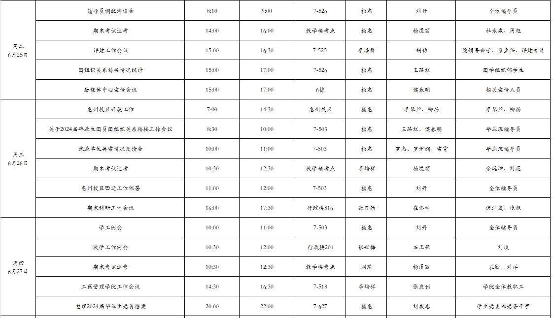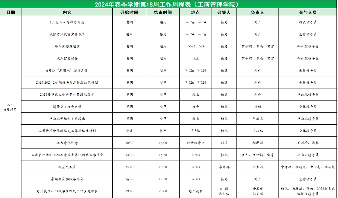 suncitygroup太阳集团2024年春季学期第18周工作周程表