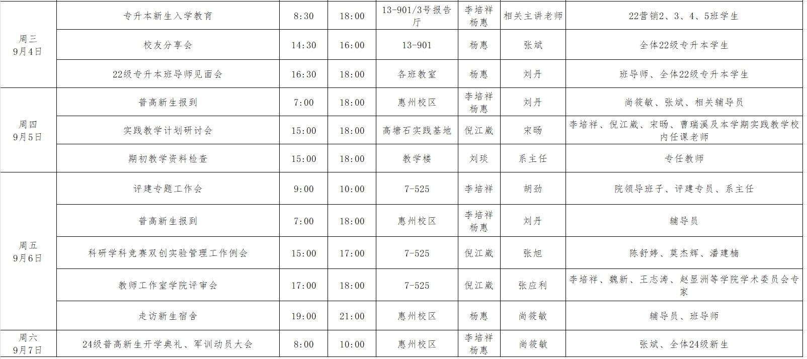 suncitygroup太阳集团2024年秋季学期第1周工作周程表