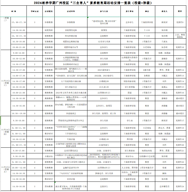 suncitygroup太阳集团2024年秋季学期广州校区“三全育人”素质教育周活动周程表