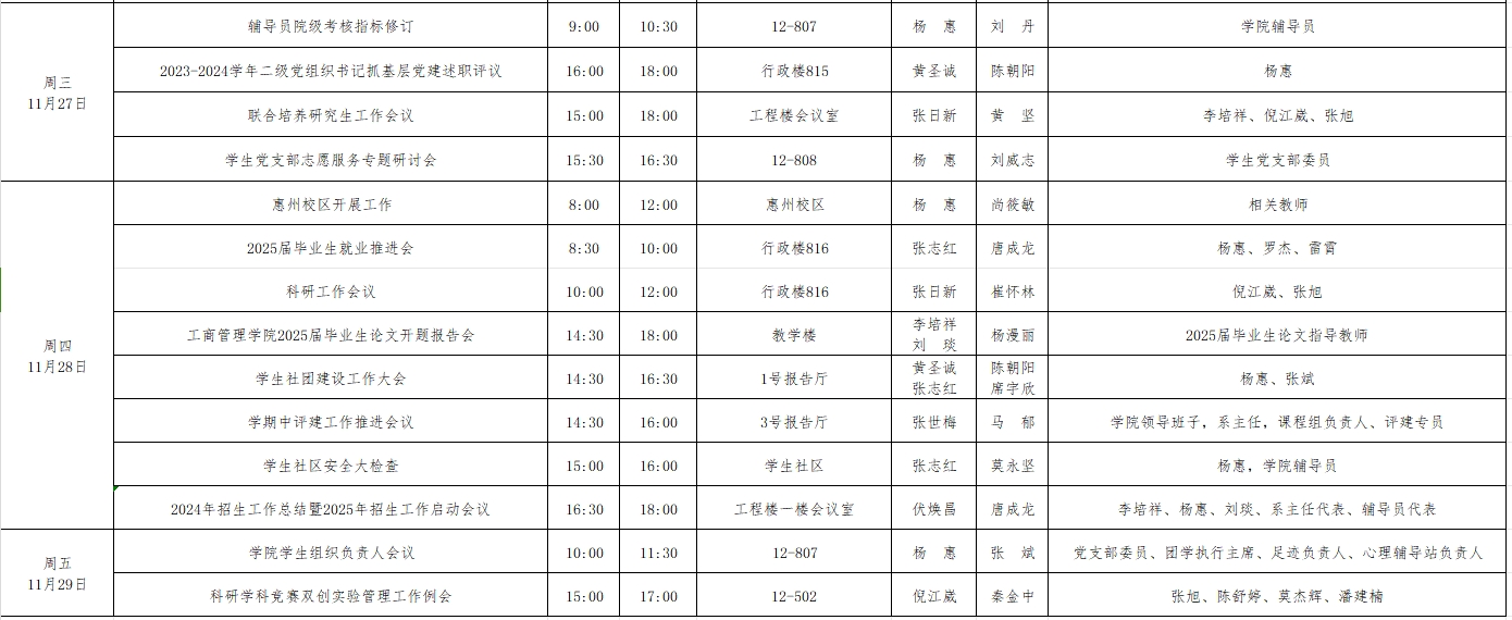 suncitygroup太阳集团2024年秋季学期第13周工作周程表