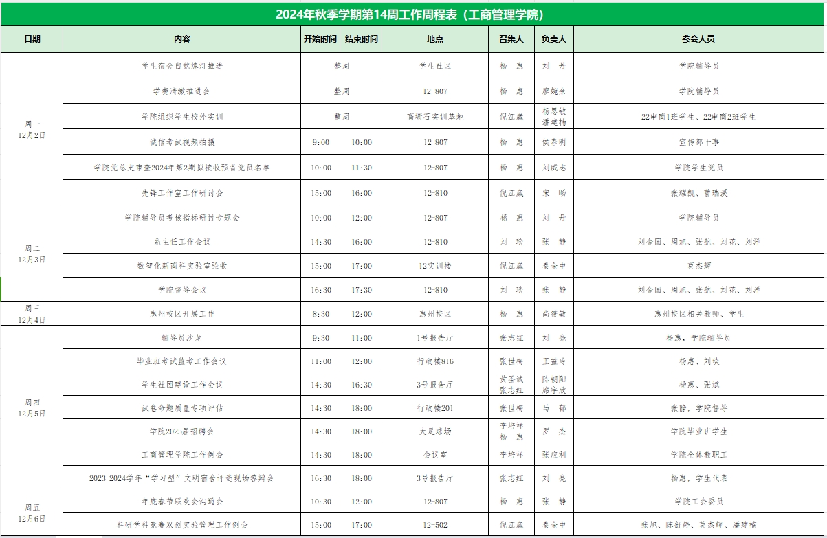 2024年秋季学期第14周工作周程表(suncitygroup太阳集团).xlsx