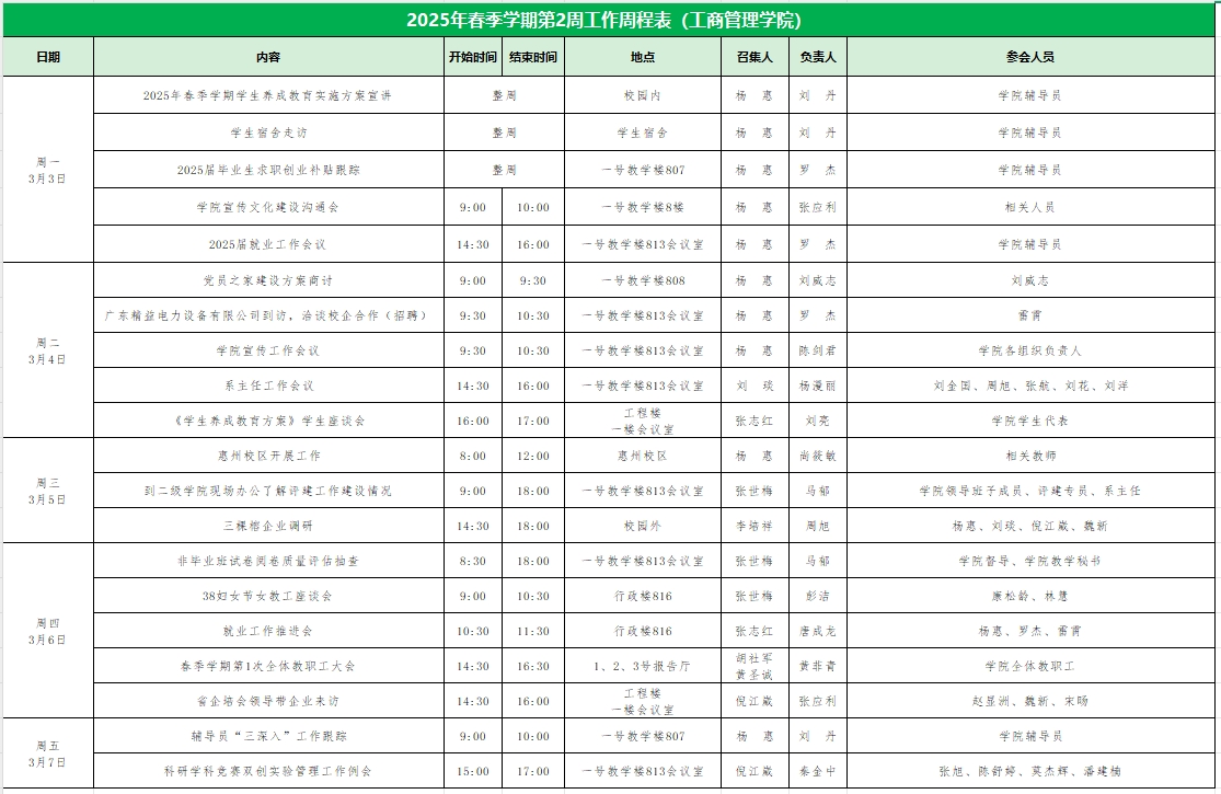 suncitygroup太阳集团2025年春季学期第2周工作周程表